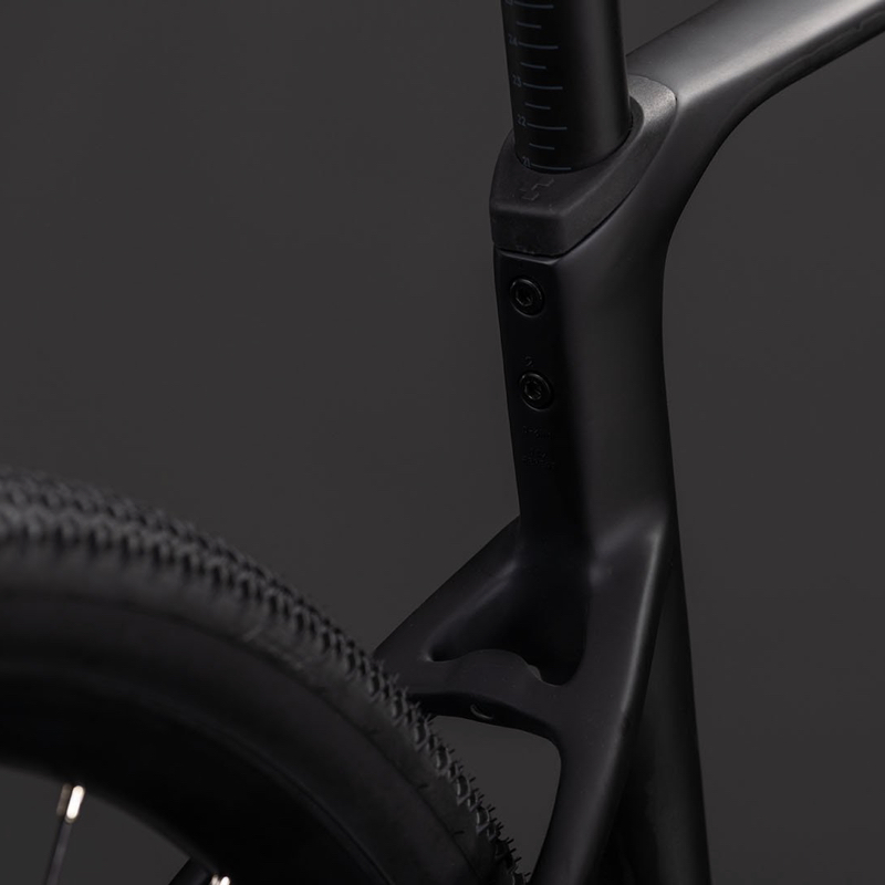 A estrutura Nuroad C:62 junta tudo da Cube sobre carbono e gravel para um formato perfeito. Com folga no quadro para pneus de até 50 mm (45 mm com guarda-lamas). Uma braçadeira de assento integrada e roteamento de cabos semi-integrado, complementam a aparência elegante e orgânica do quadro. A forqueta de carbono tem duas posições de montagem de suporte, enquanto a estrutura em si está pronta para aceitar guarda-lamas e um suporte traseiro.